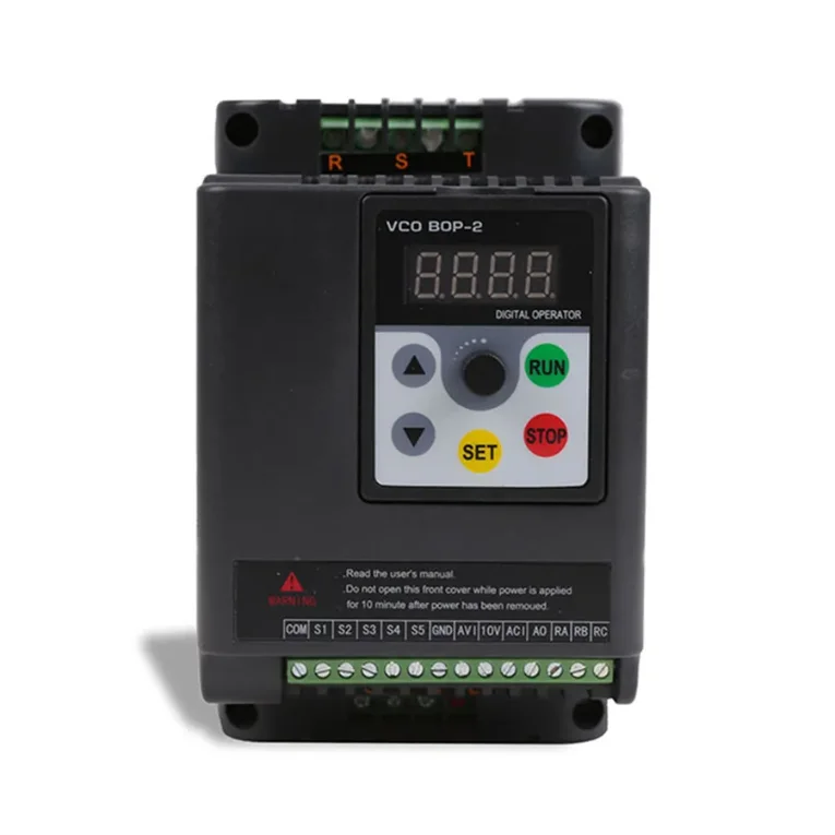 三相380V220V通用变频器兼容异步电机与永磁同步电机调速控制,支持精确矢量控制与面板调速,操作简便、性能稳定。适用于卷绕、输送、包装、自动化机械等多种工业应用。